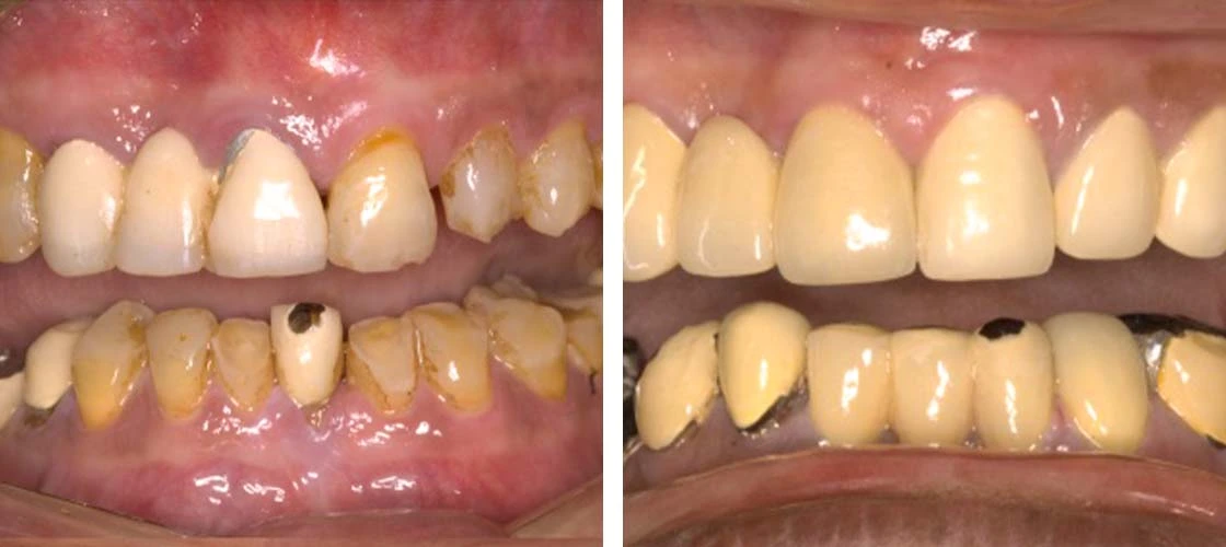 If the teeth are replaced by single crowns, fixed bridges or dentures stabilised by implants.